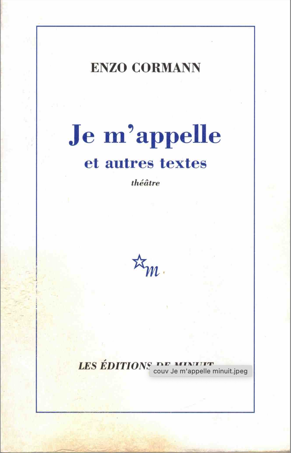 Texte publié aux Éditions de Minuit, dans le recueil « Je m’appelle et autres textes », 2008.